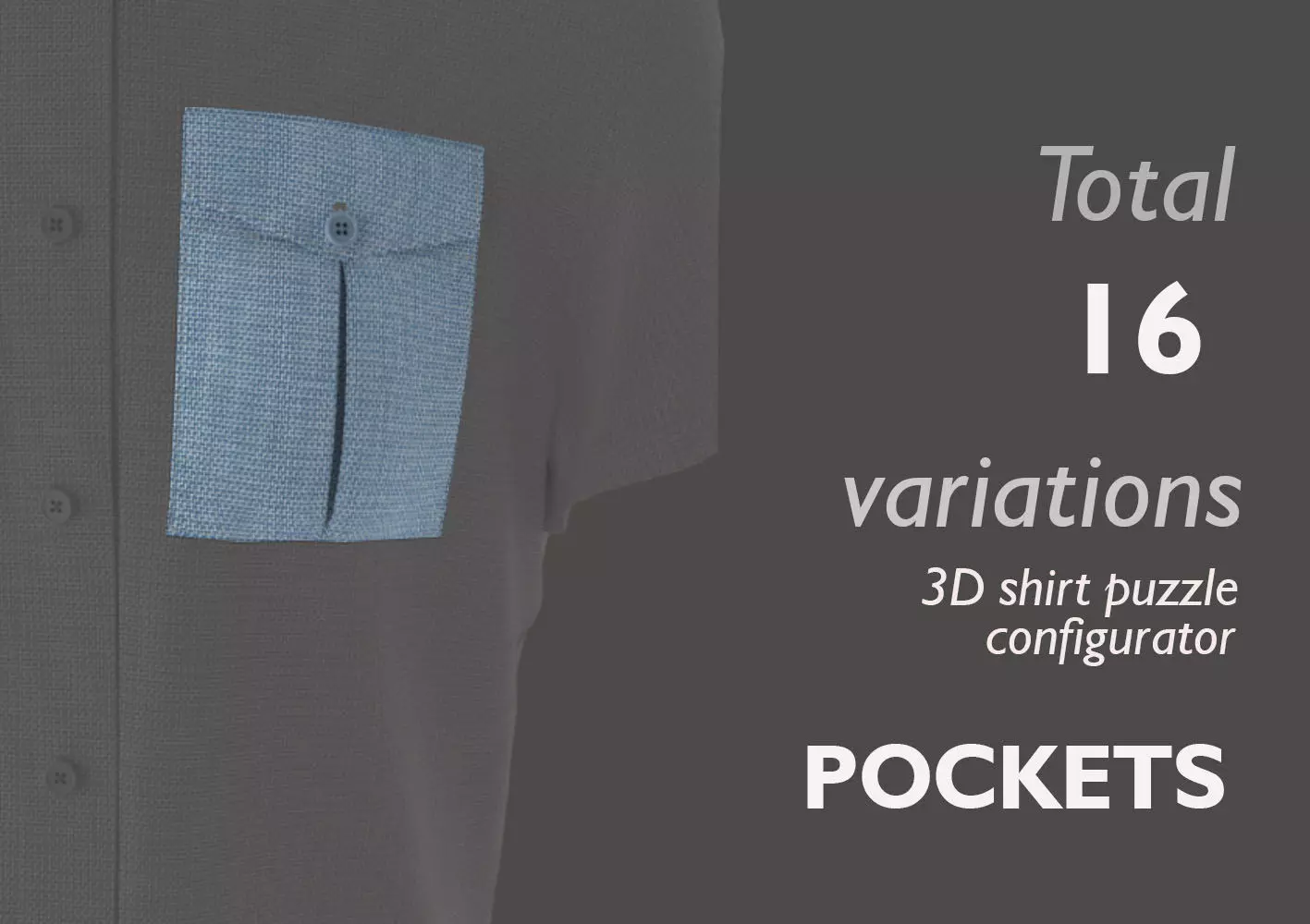 My name is Manunta Melinda, I am a 3D fashion designer. I prepared the PARTS for the men's SHIRT. These 8 pieces are perfectly matched to the other T-shirt configurator models, ready for use. Easy to use for displaying products for wepshop.The models contain upper points, buttons for UV maps and 4K materials.