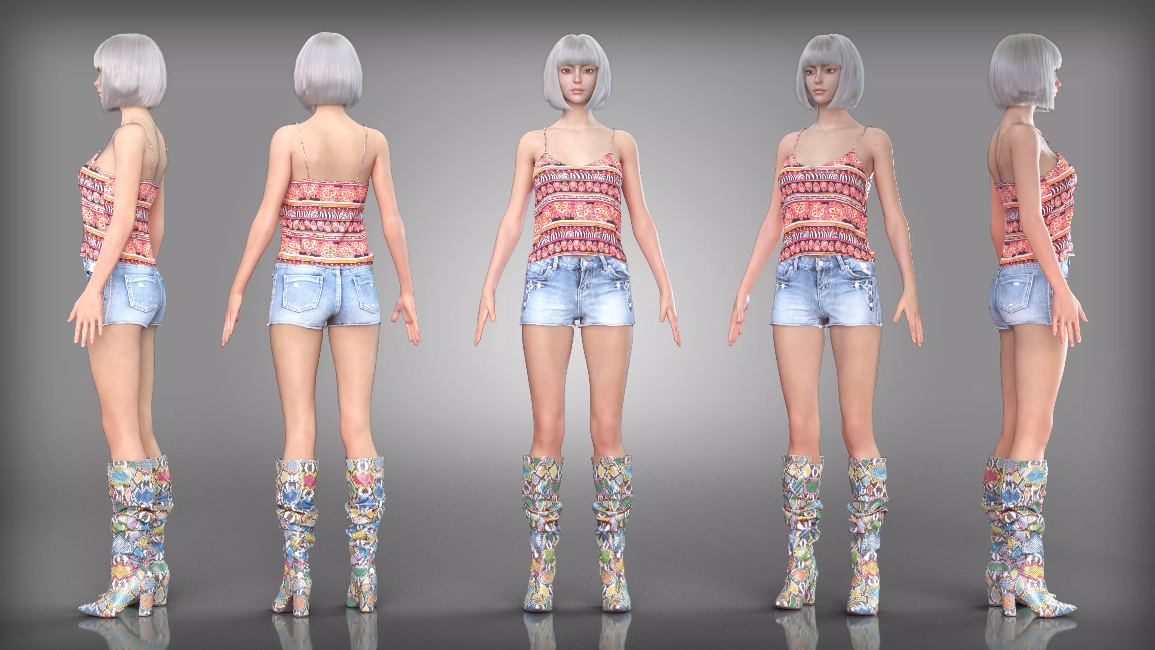 Patterned Top and Denim Shorts with Colorful Boots Low-poly 3D model