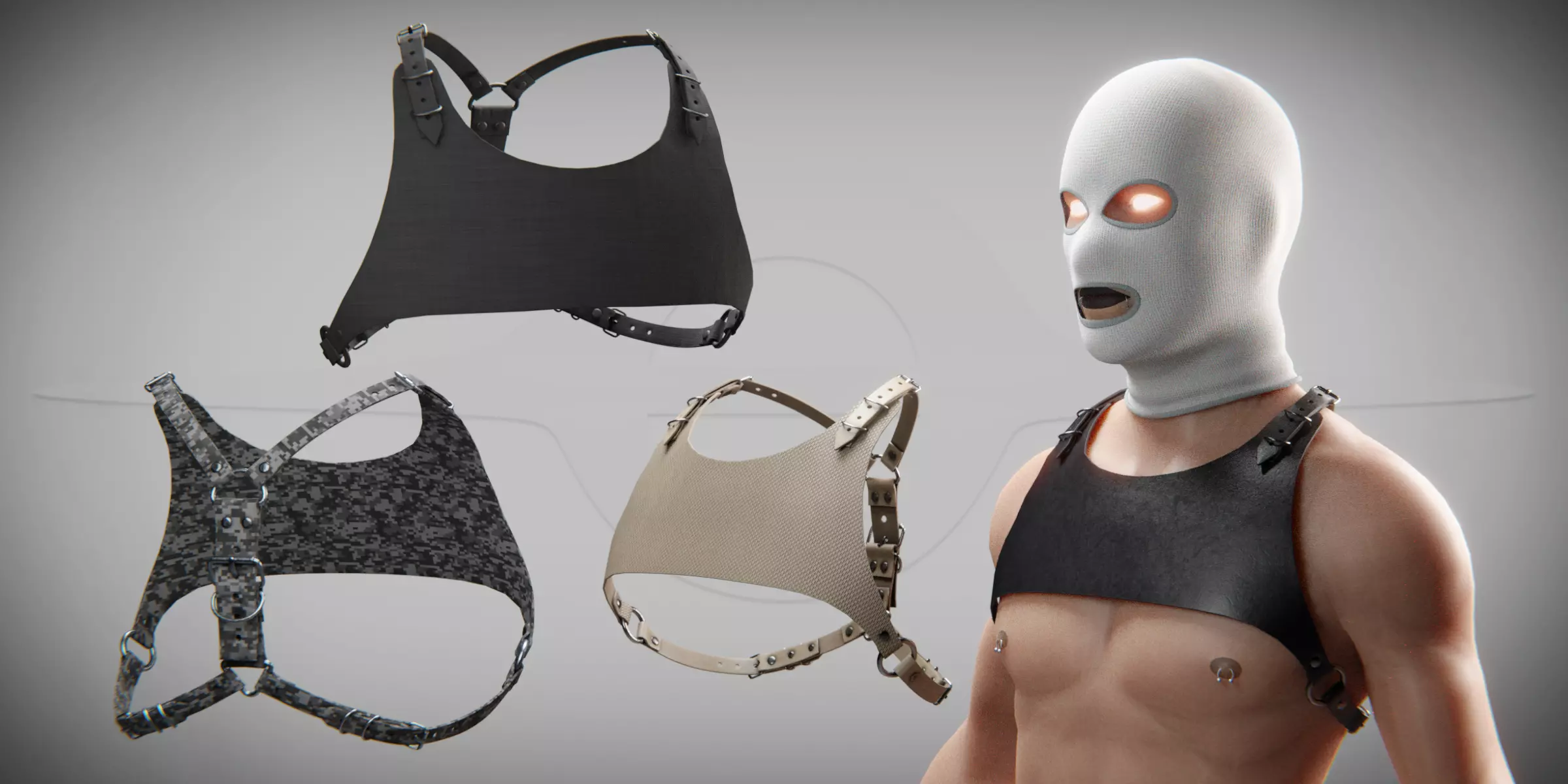 PBR Male Chest Harness accessory variations Low-poly 3D model
