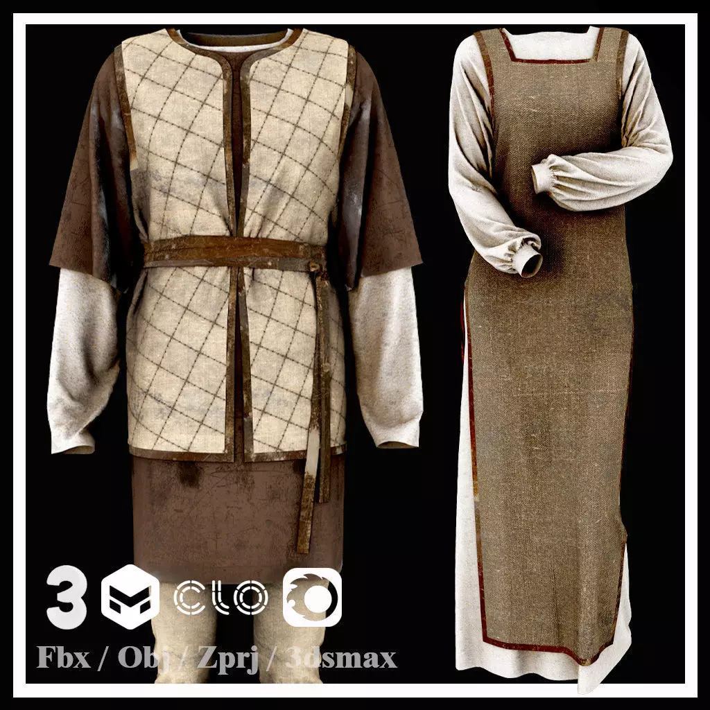 Hi everyonePeasant dress design0 to 100 The design of this collection has been done in Marvelous Designer software, which includes a men's set, pants, blouse and leather jacket, and a women's set that includes a blouse and a dress top, and all the materials of the clothes that are dirty and old in 3ds max software is done.This collection of peasant clothes belongs to the Renaissance period and can be used for games, animations, promotional teasers, etc.The file of this collection is placed as fbx, obj, zprj and 3dsmax as a zip file.All sets are made with corona rendering engine.Please rate and review this product! This product can be very useful for you! If you have any problems or can give feedback, message me here. I hope you download and enjoy.