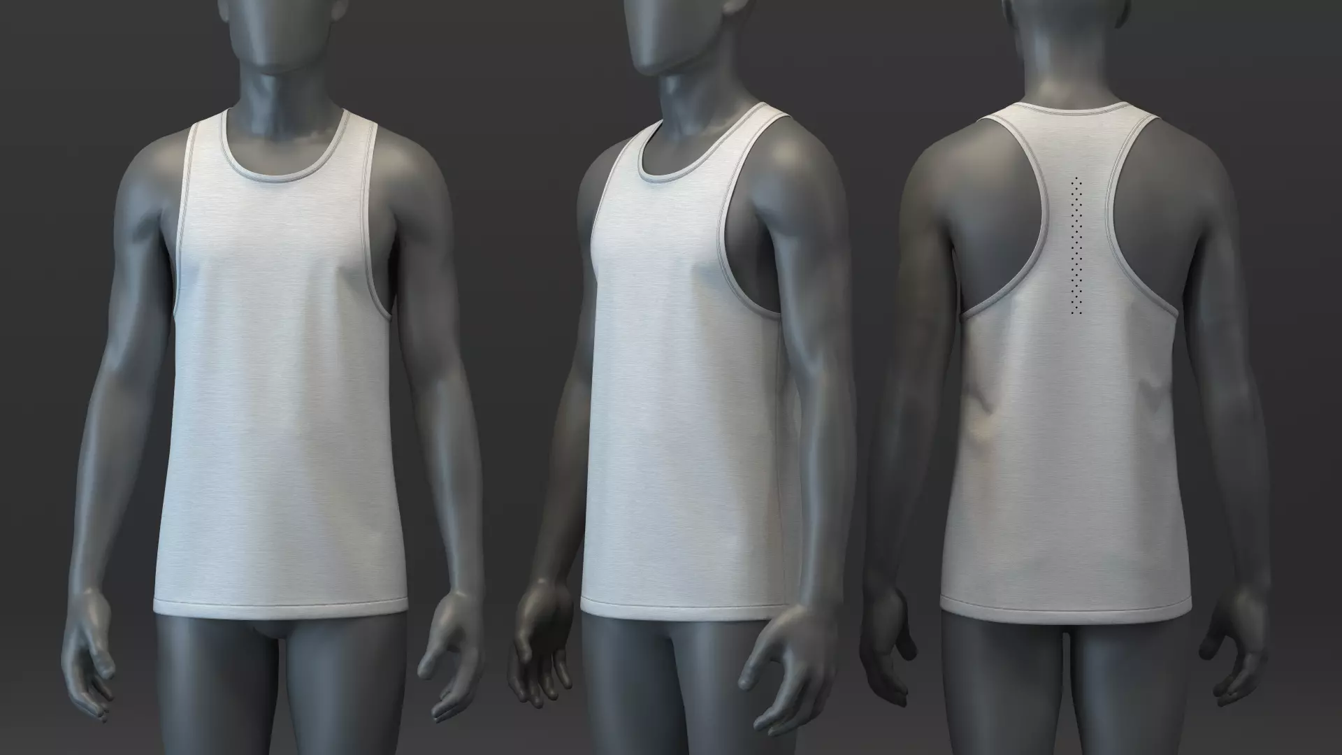 DESIGN DETAILS• Main Fabric: Knit Melange• Tapered fit with semi-curve hem• Binding finish on neck and armhole• Racerback with perforated holes• Finish: Includes facing and stitches for a more realistic look when rendered