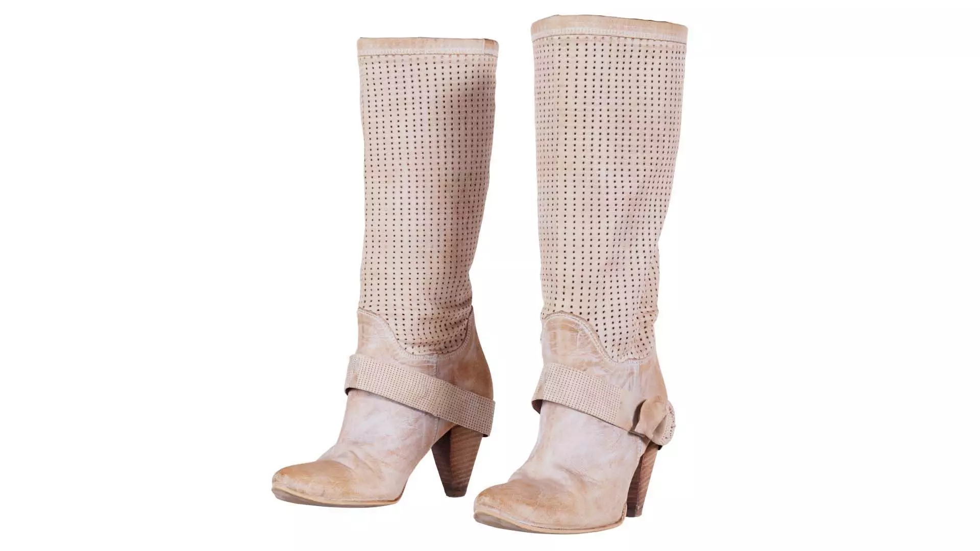 This model, pink leather buckle boots, has been created using photogrammetry from a real world object. It is featuring a pair of beige boots with a mesh design.The 3D Model is part of the Polygonal Miniatures Remastered collection, which has been optimized with better shaders, correct scaling (meters) and centered position.We use multi camera capturing in the 3D scanning process. The scan data is cleaned and processed in Zbrush and Photoshop. In the end, the low poly product contains unwrapped UV's, textures and normals maps. Detailed specifications can be found below: