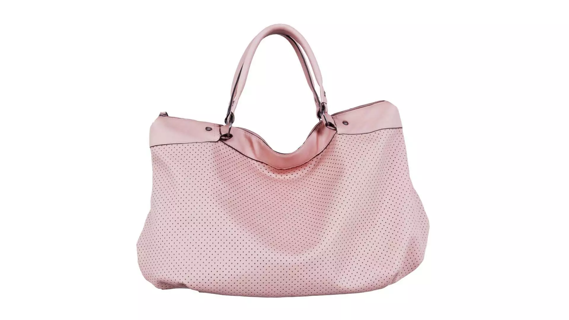 3D scanned model featuring the pink leather bag is made from perforated leather. This model, pink leather handbag, has been created using photogrammetry from a real world object.The raw scan data has been cleaned, retopologized and UV-unwrapped using Zbrush. The result is a low poly mesh with baked maps. The .obj and .mtl are configured so that maps will load automatically in the shader (tested in Blender). In addition, a Blender scene is provided with the model and shader already set up for rendering and export. Detailed information below: