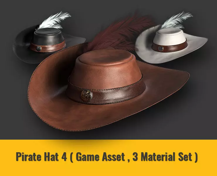 Pirate Hat 4 - Game Asset - 3 Material Set - Low-poly 3D model