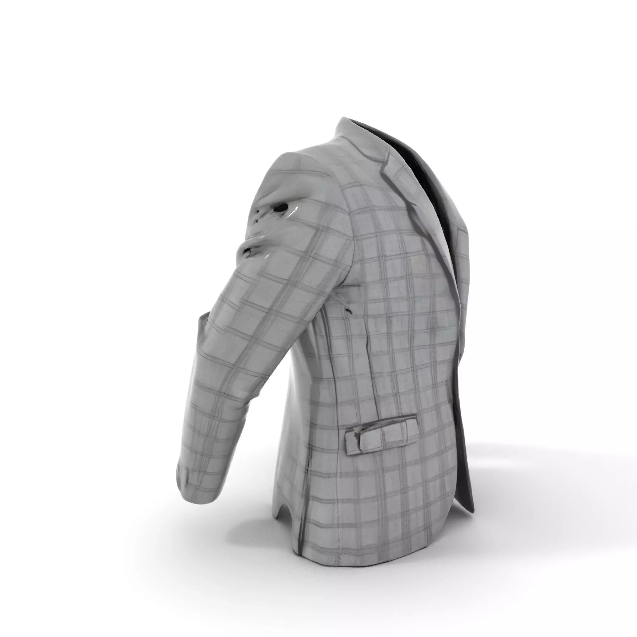 This plaid gray suit jacket model showcases a stylish and professional design, perfect for virtual fashion shows or realistic character development in cinematic scenes. Each model has 3 levels of detail: low-poly (1000 triangles for mobile), middle-poly (10,000 triangles for environment), and high-poly (100,000 triangles), which allows for the use of this model in production rendering (such as 3ds Max, Maya, Cinema 4D, Blender, Vray/Corona/Cycles and all others), game engines (Unity and Unreal compatible), and interactive presentations, providing a choice of detail based on the LOD System principle. This model is ideal for use in fashion simulations, retail visualization, and VR experiences. The model's textures are PBR, Diffuse, NormalMap, and reflection/roughness/metallic, which are suitable for any modern rendering engine. All models are accurately unwrapped and have no overlapping UV. All textures are 4096x4096 in size. If you like this model, please leave a like and comment!