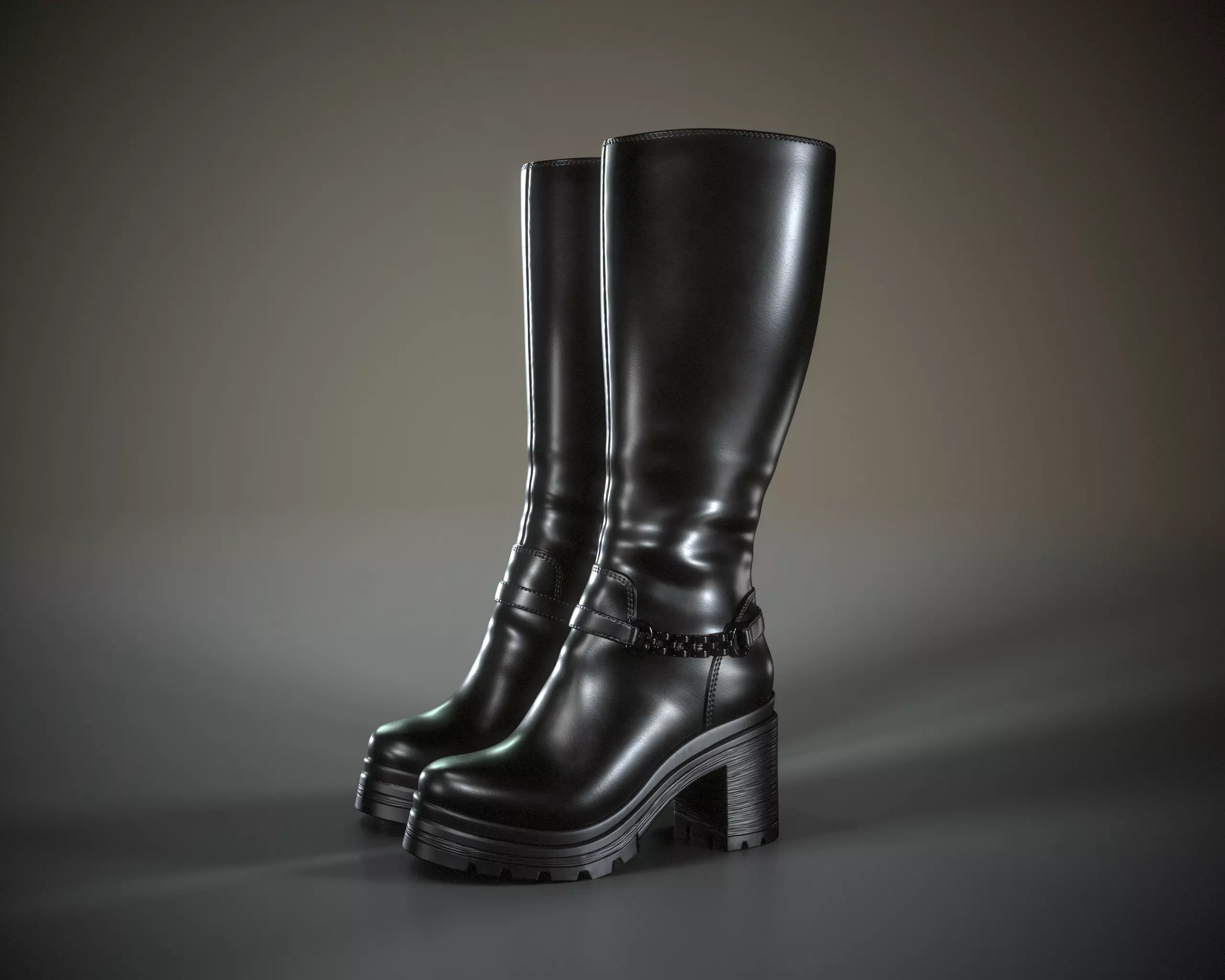 Platform Knee High Boots Low-poly 3D model