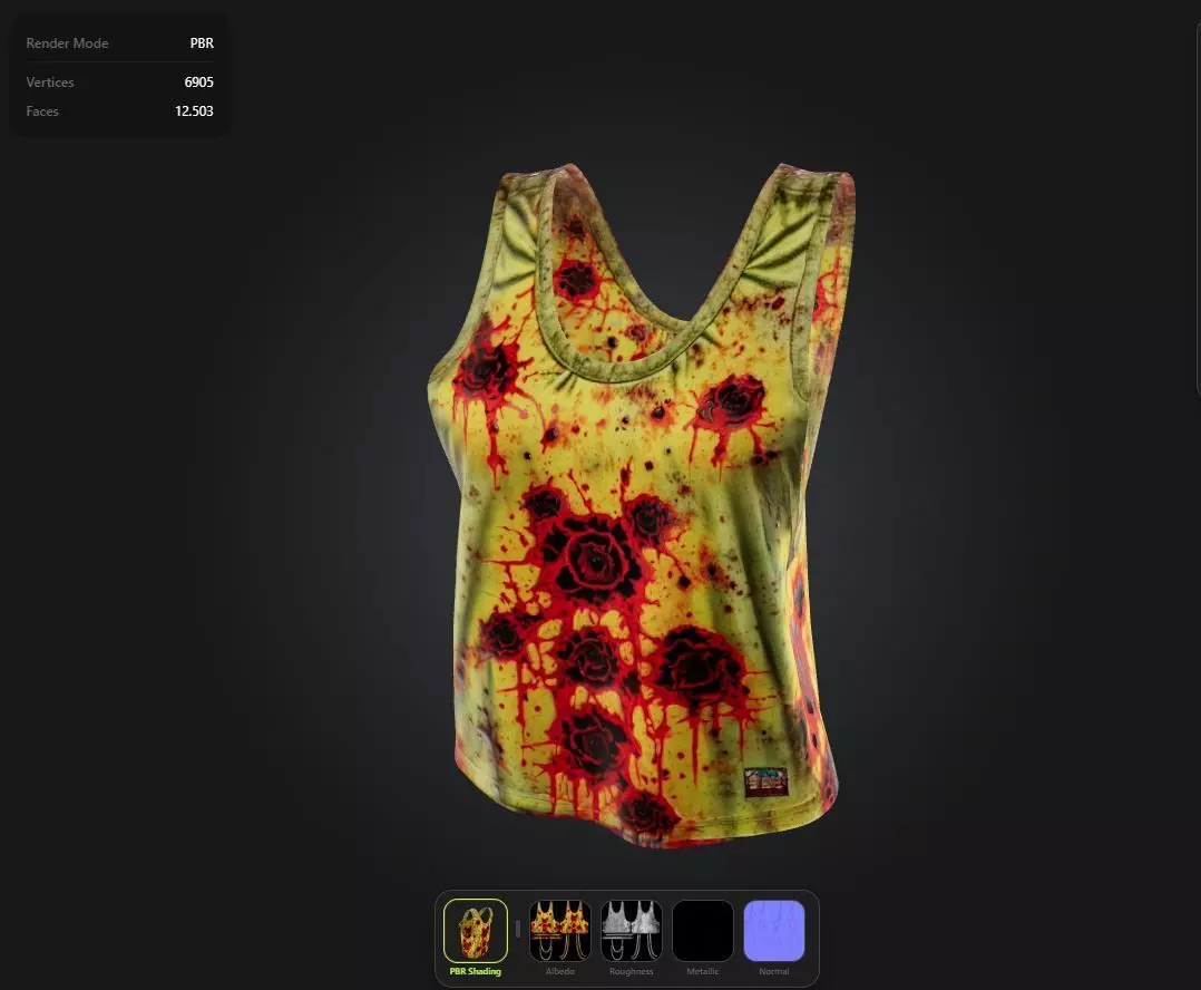 Uses Physically Based Rendering materials, which give the model realistic lighting and surface properties.