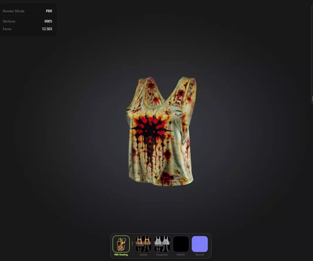 Uses Physically Based Rendering materials, which give the model realistic lighting and surface properties.