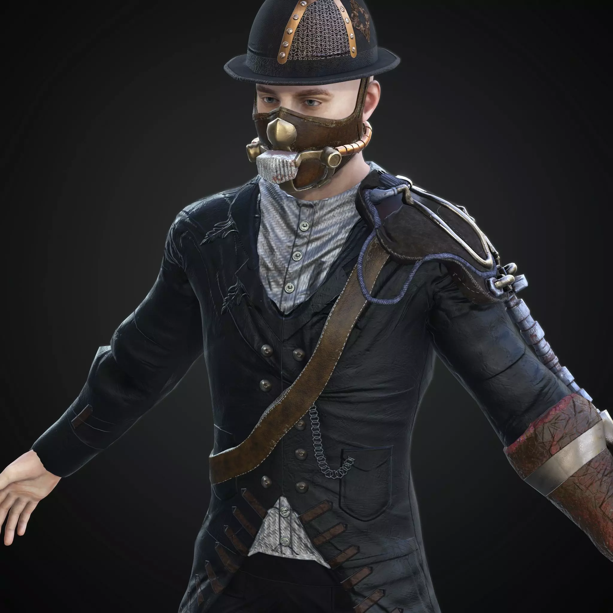 Steampunk rigged character Low-poly 3D model