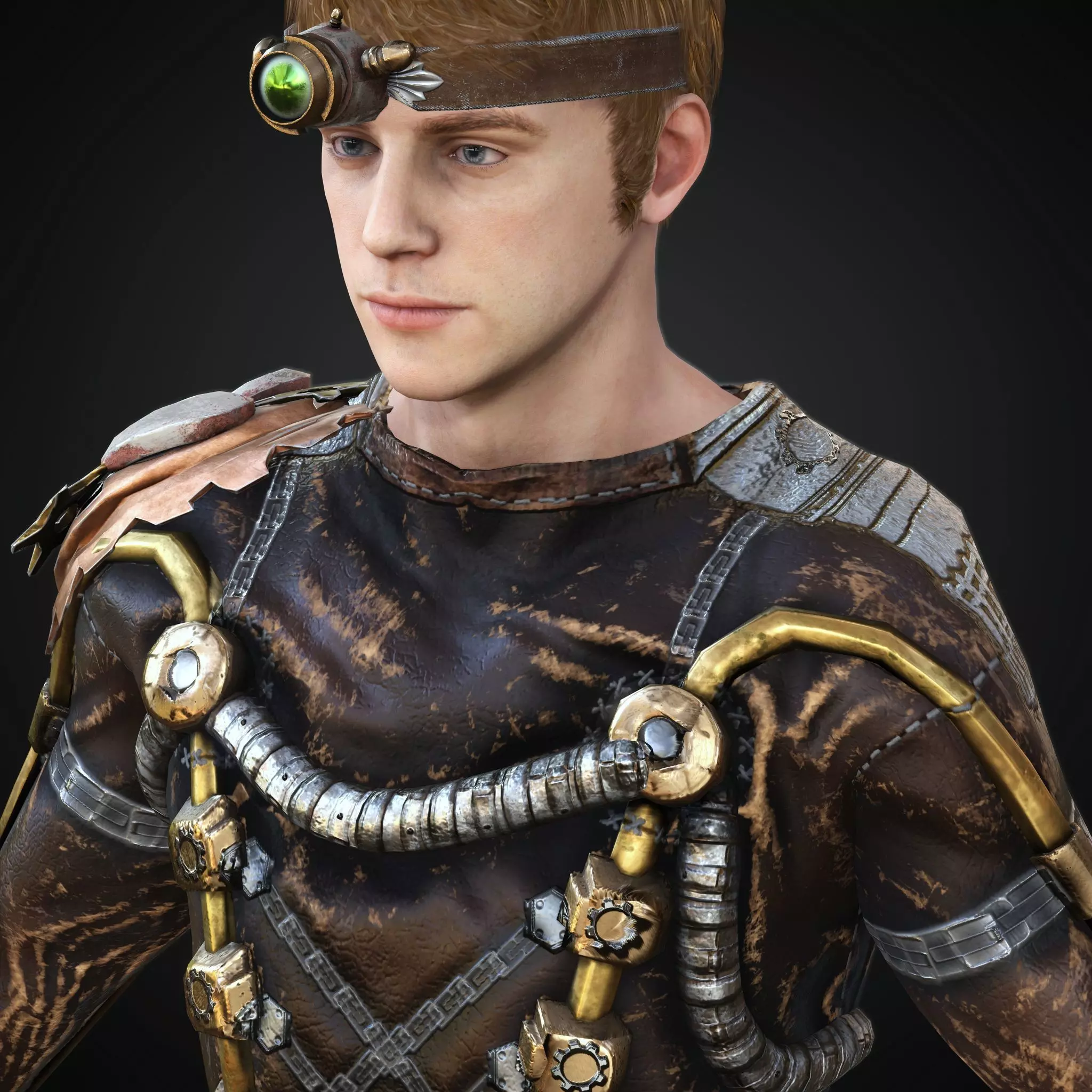 Steampunk rigged character Low-poly 3D model