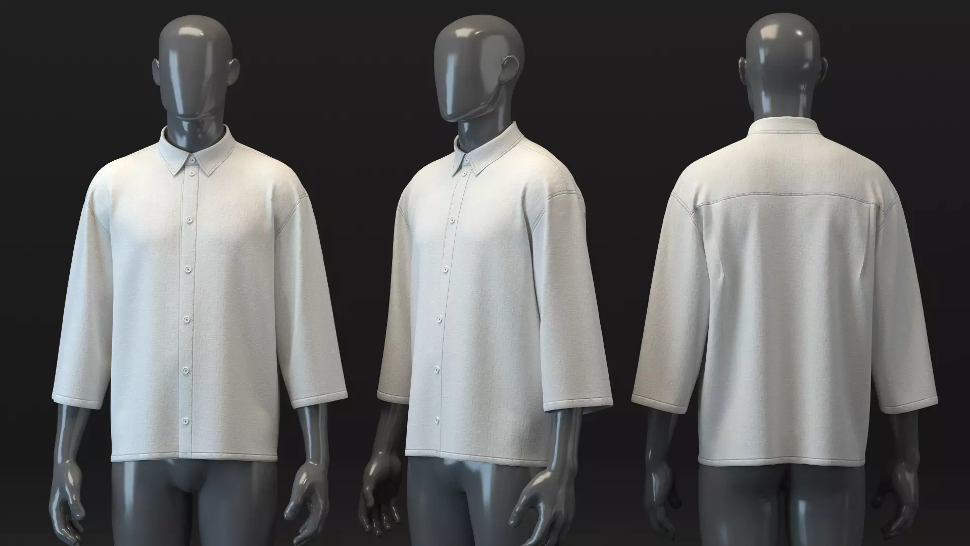 DESIGN DETAILS• Main Fabric: Linen (VMOD Library)• Neckline: Shirt Collar• Patch pocket• Body: 7 button closure (functional)• Silhouette: Boxy fit• Sleeve: Quarter• Length: Hip; Straight hem• Finish: Facing, puckering and stitches included for a more realistic look when rendered