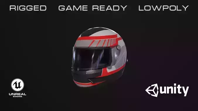 Racing helmet low-poly 3d model ready for Virtual Reality (VR), Augmented Reality (AR), games and other real-time apps.