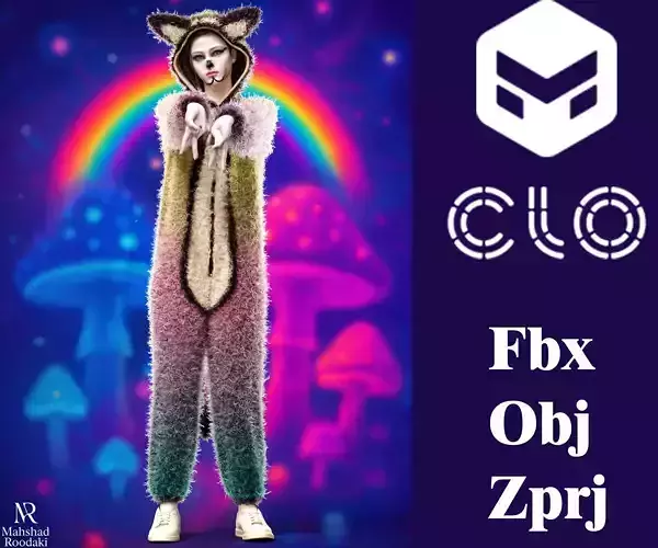 Step into the Rainbow Cat Realm, a magical and whimsical digital fashion outfit that combines fantasy charm with playful feline vibes. This furry cat-inspired jumpsuit is designed entirely in CLO3D / Marvelous Designer, offering a professional-quality 3D asset optimized for games, animations, cinematic productions, VR, AR, and metaverse experiences.