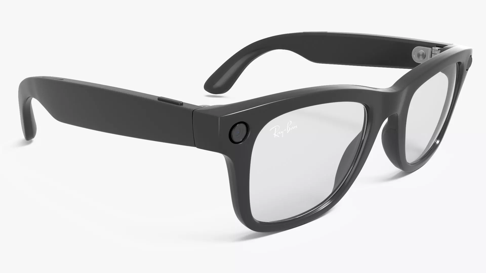 RayBan Meta AI Smart Glasses Wearable Electronics Black is a three-dimensional model of modern pair of intelligent eyeglasses with integrating cameras, audio hardware, and artificial intelligence features.