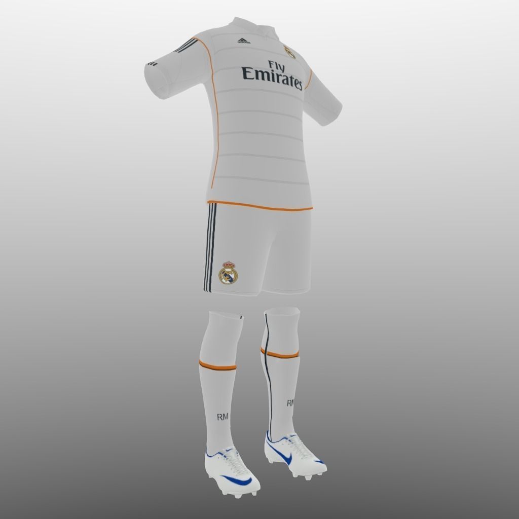 Soccer kit clothes for Real Madridfootball team.Shirt, shorts and shoes.Low and high poly.