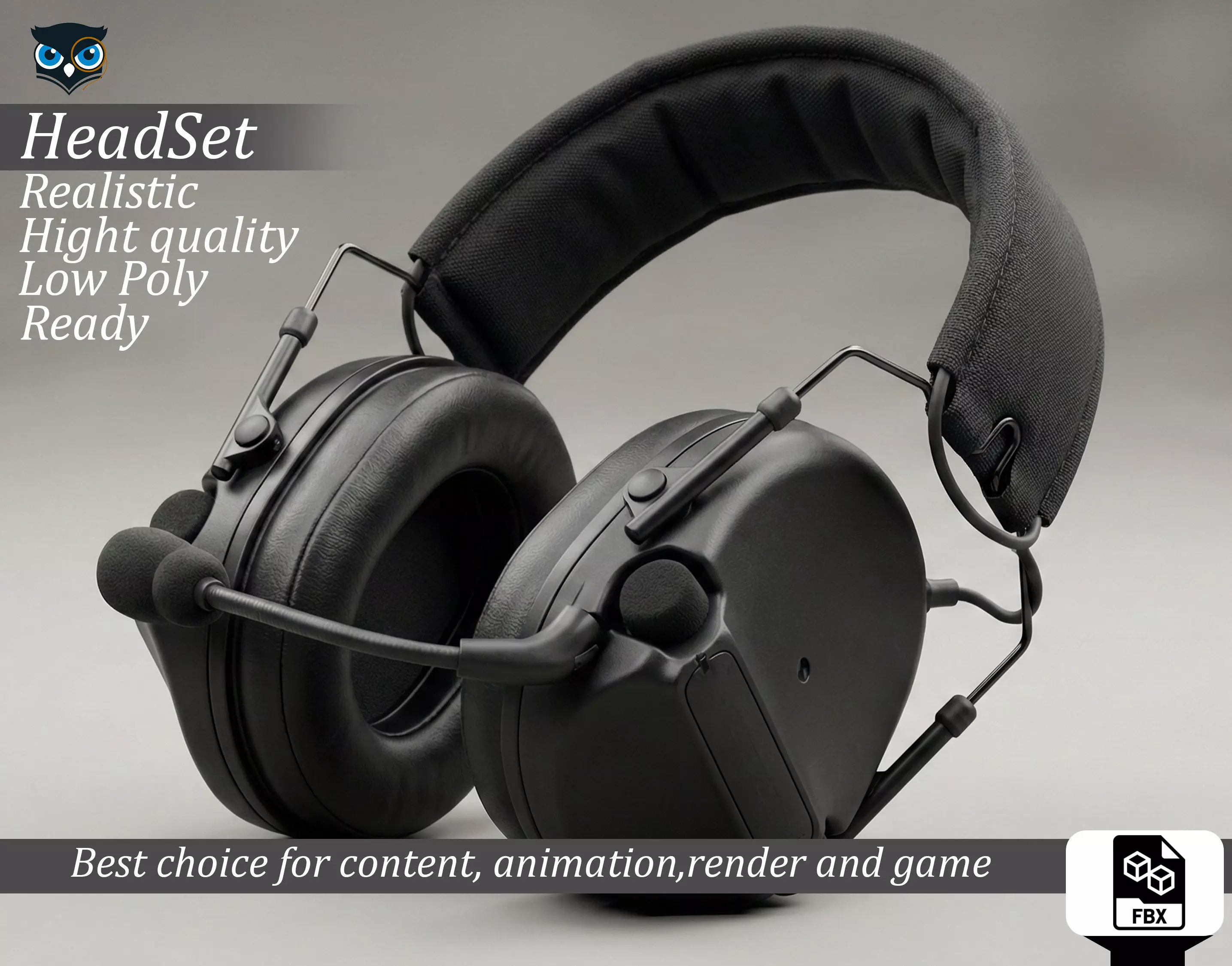Realistic Military Tactical Headset - Game Ready Low-poly 3D model