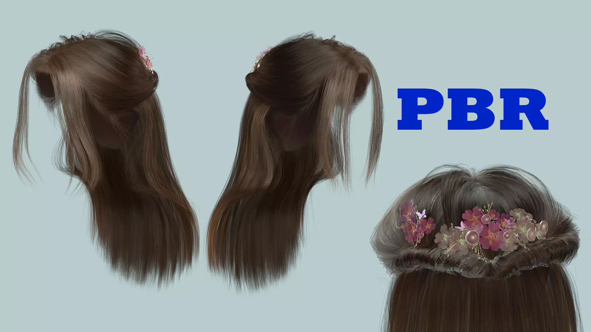 Include This Realistic Woman Long Hair Style 03 Low Poly 3D Model Pack
