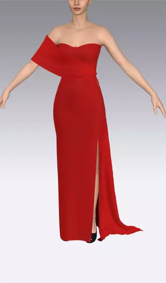 Red dress heart shape collar and drape collar and drape front tail slit skirt long dress modern look chic