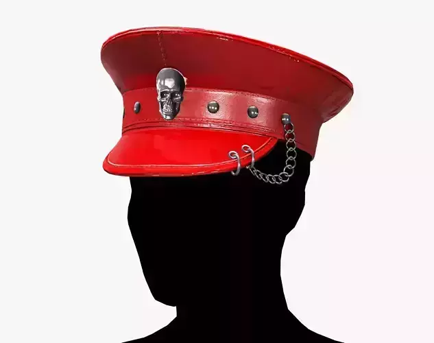 Red Latex Military Hat with Chain Detail - Avatar Accessory Low-poly 3D model