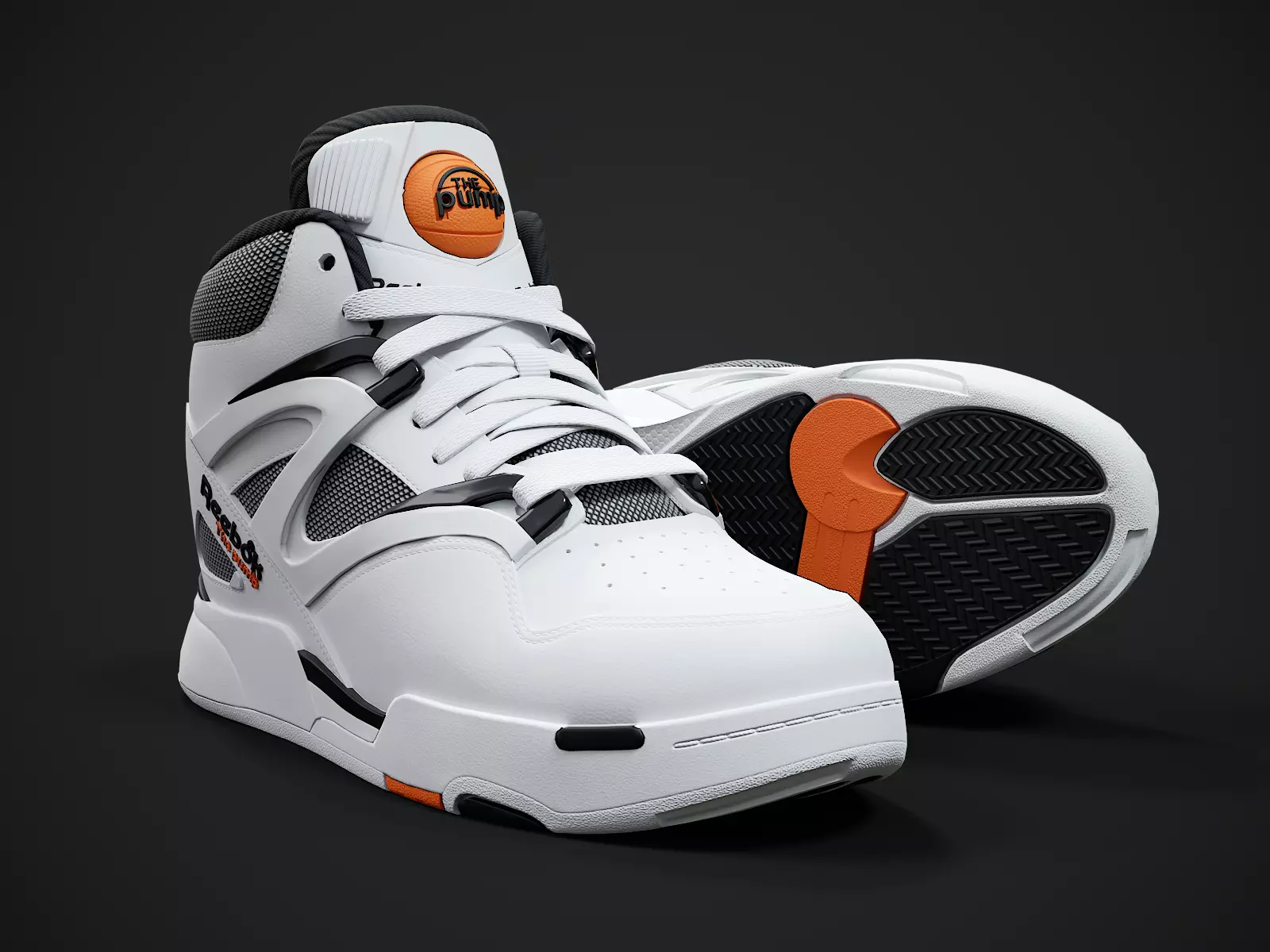 Medium poly PBR textured model of Reebok Pump Omni Zone-2 sneaker (white-black colorway). Well textured and ready for Virtual Reality (VR), Augmented Reality (AR), games and other real-time apps for handheld devices.