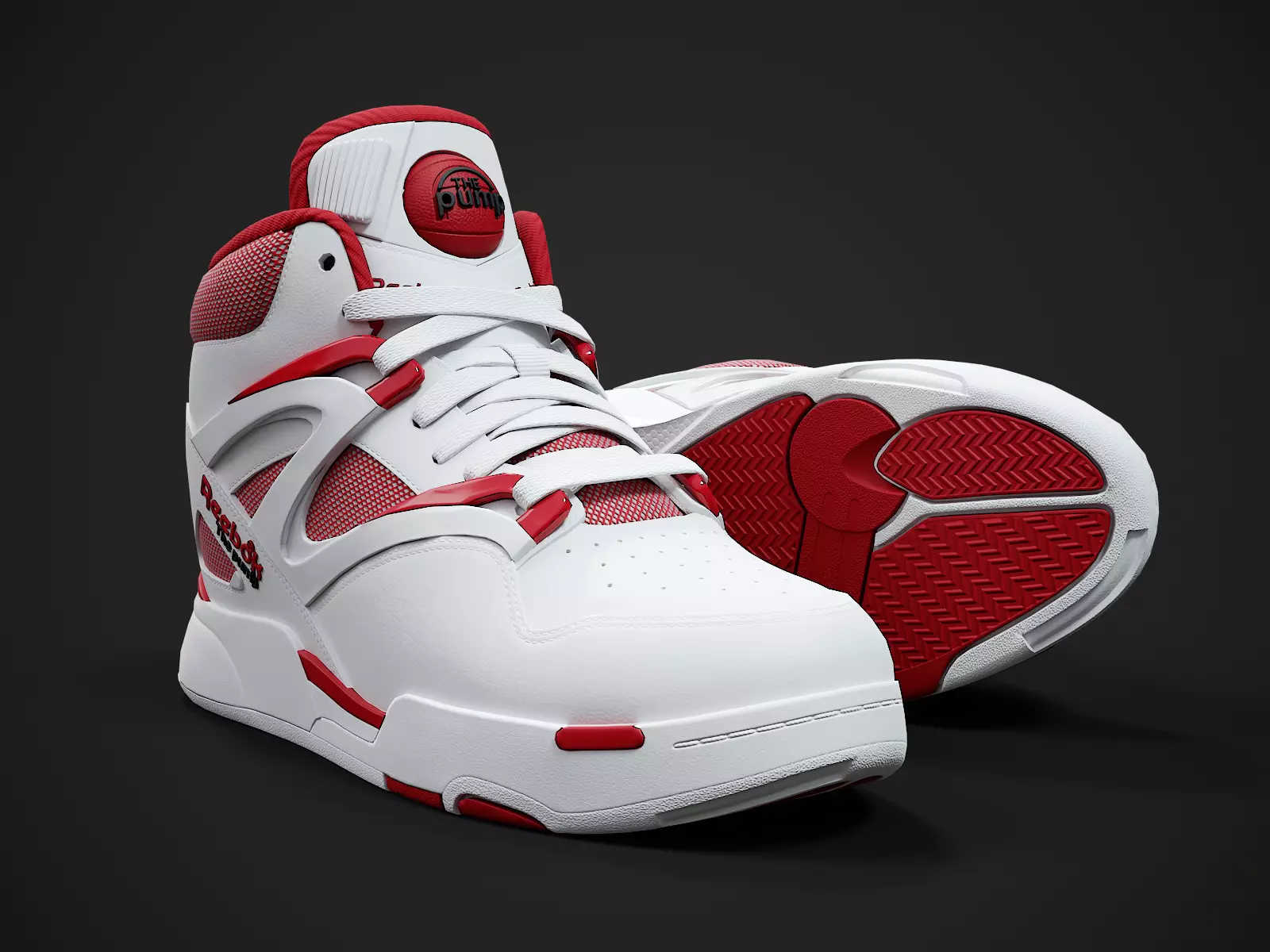 Medium poly PBR textured model of Reebok Pump Omni Zone-2 sneaker (white-red colorway). Well textured and ready for Virtual Reality (VR), Augmented Reality (AR), games and other real-time apps for handheld devices.