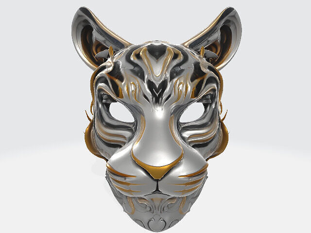 Unleash the power of the wild with the Regal Tiger Mask 3D Model—a masterpiece of elegance, strength, and artistry. This luxurious mask is crafted with intricate details, merging the fierce beauty of a tiger with the sophistication of ornate filigree and gold accents.