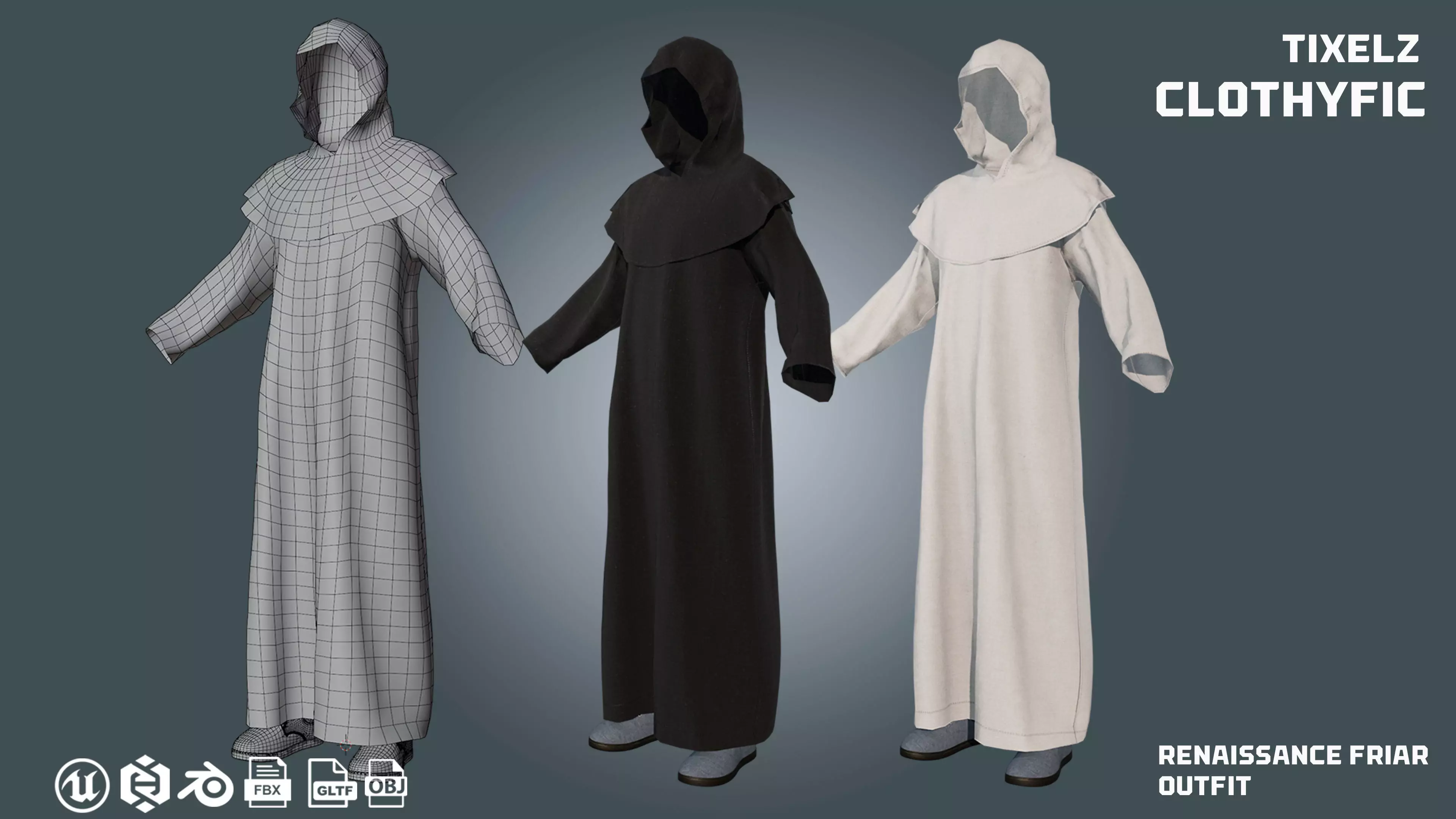 Formats: Blender (.blend), FBX, OBJ, GLTF, Unreal (.uasset), and Metahuman Package (.mhpkg)