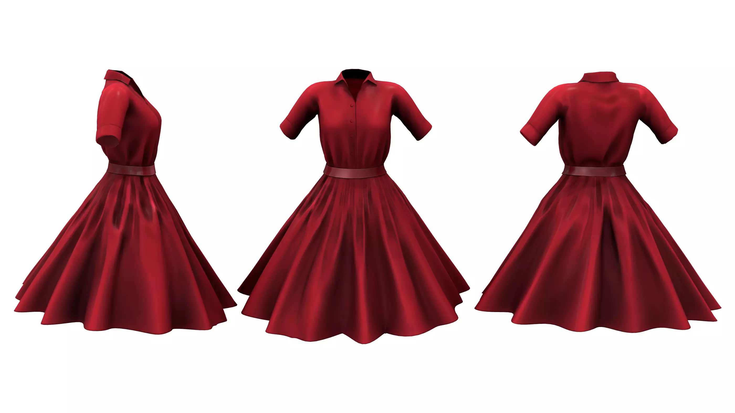Retro Flare Out Skirt Shirt Dress Low-poly 3D model