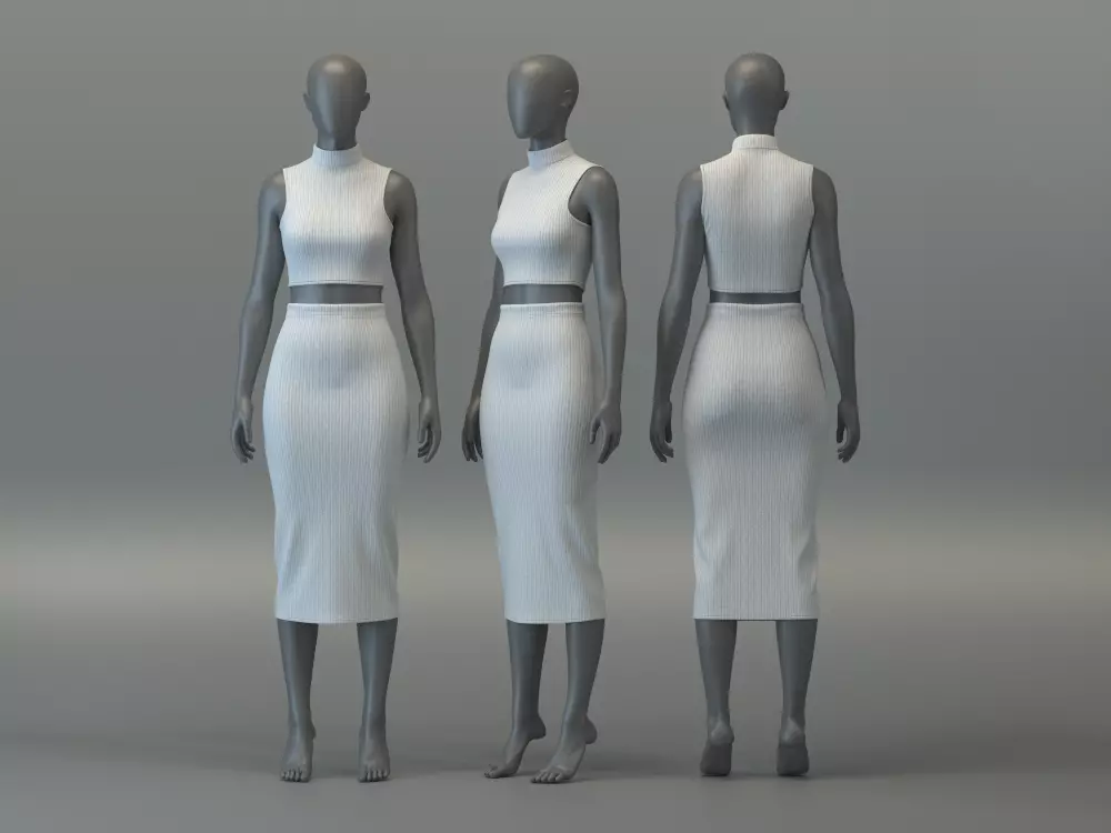 Skirt• Main Fabric: Rib Knit• Silhouette: Fitted; High waist• Length: Midi• Finish: Facing & stitches included for a more realistic look when rendered