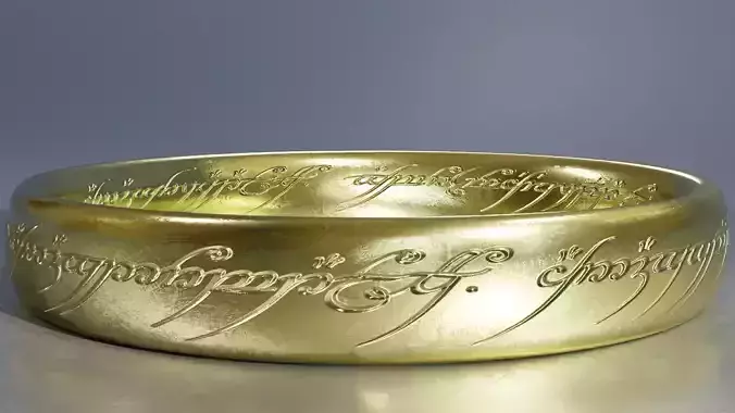 Ring from Lord of the Rings as a low poly model. The latter are faked in the 3D model (fbx, obj, blend) by a normal map. The Blender file also contains all visible models, materials with all packed textures and a well prepared lightning setup.The scene also contains a 360 degree animation with the plate and the ring and the camera perspective is prepared for rendering the animation.Please note that the scene and all objects have approximately real sizes (the ring has a diameter of about 28 millimetres).