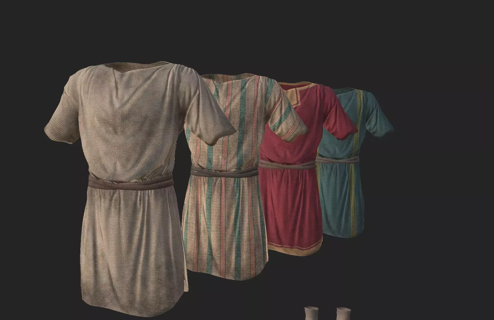 One single mesh with four texture options. Ideal for quick crowd creation, army colors, or costume changes.