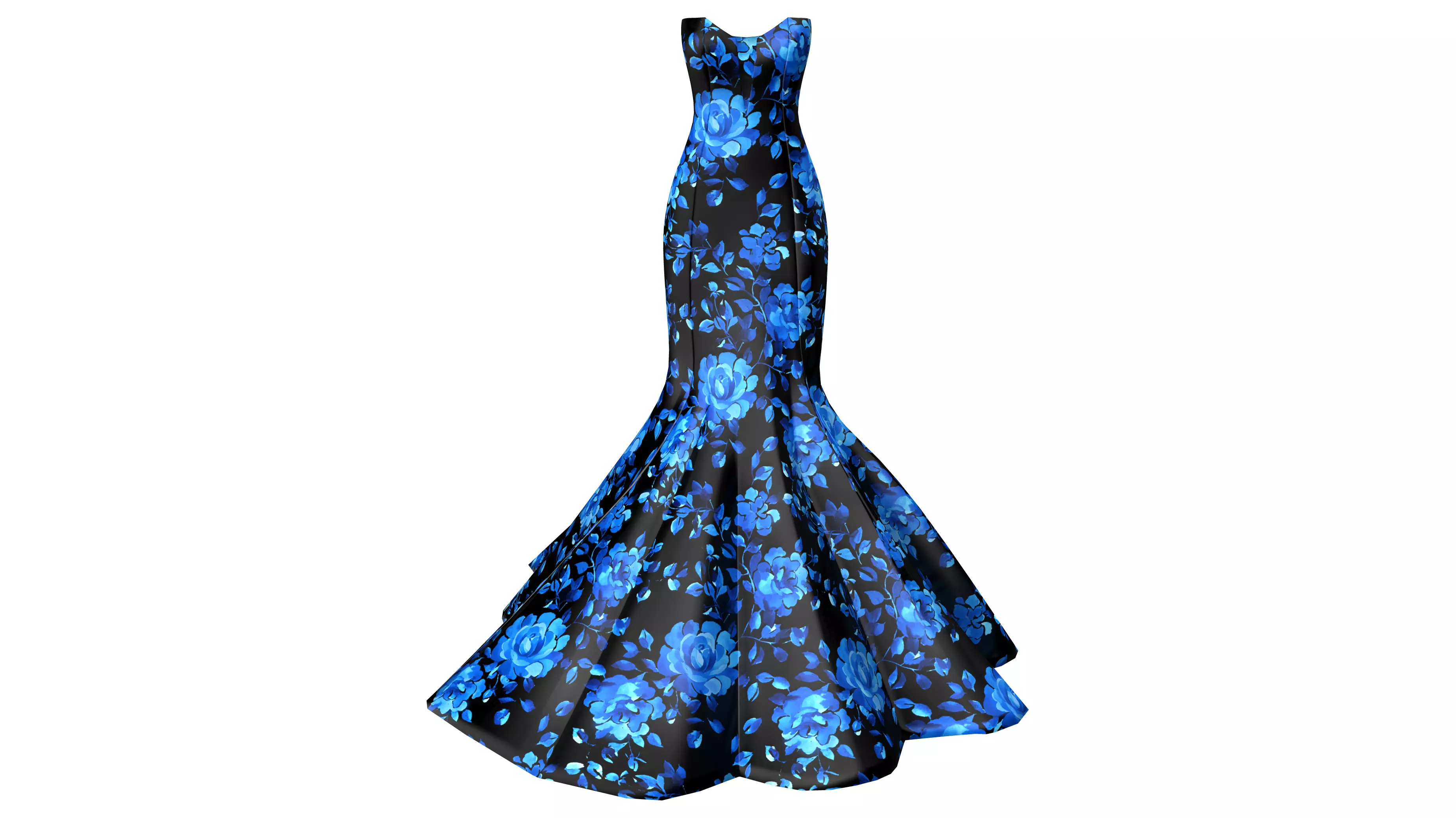 Royal Blue Floral Prom Dress Low-poly 3D model