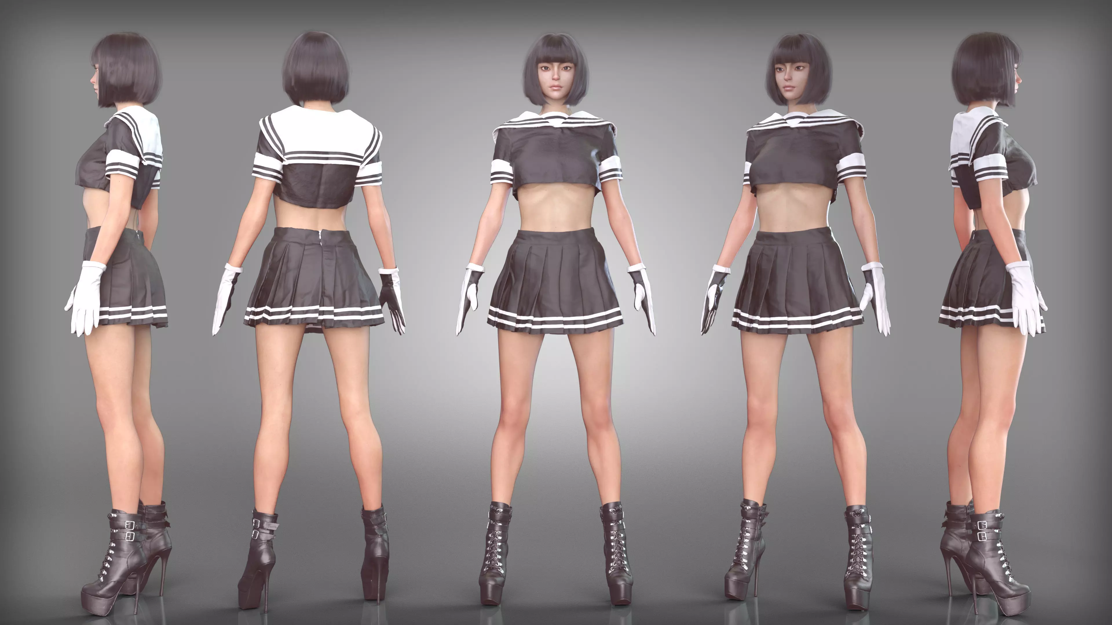 Sailor Outfit Pleated Skirt Duo Tone Leather Gloves High Heels Low-poly 3D model