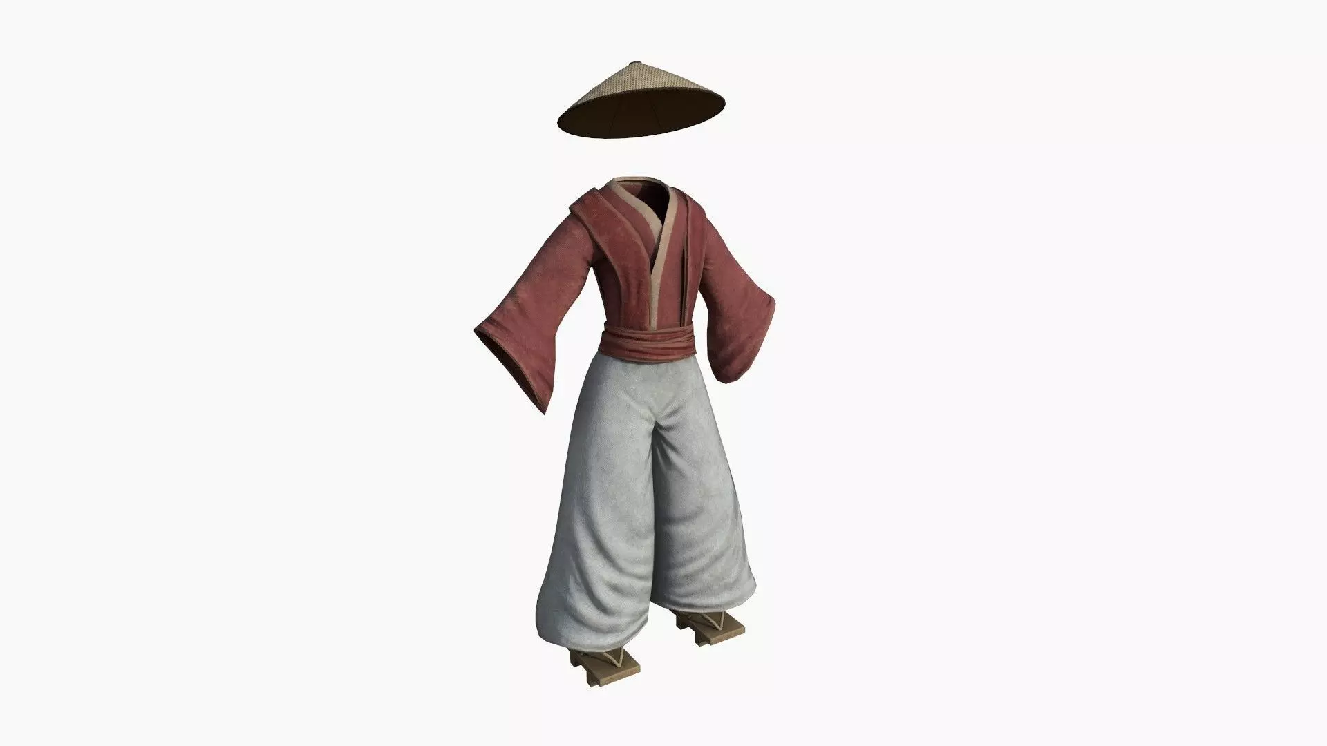 Samurai Old Outfit A06 Red - Character Clothing Design Low-poly 3D model