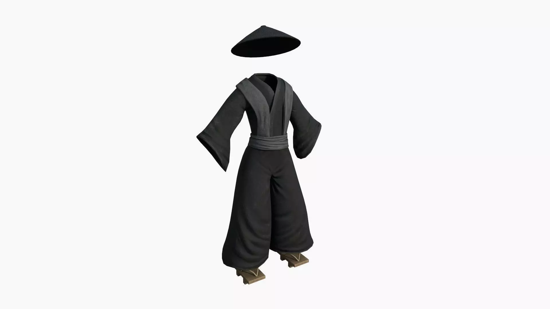 Samurai Old Outfit A10 Full Black - Character Clothing Design Low-poly 3D model