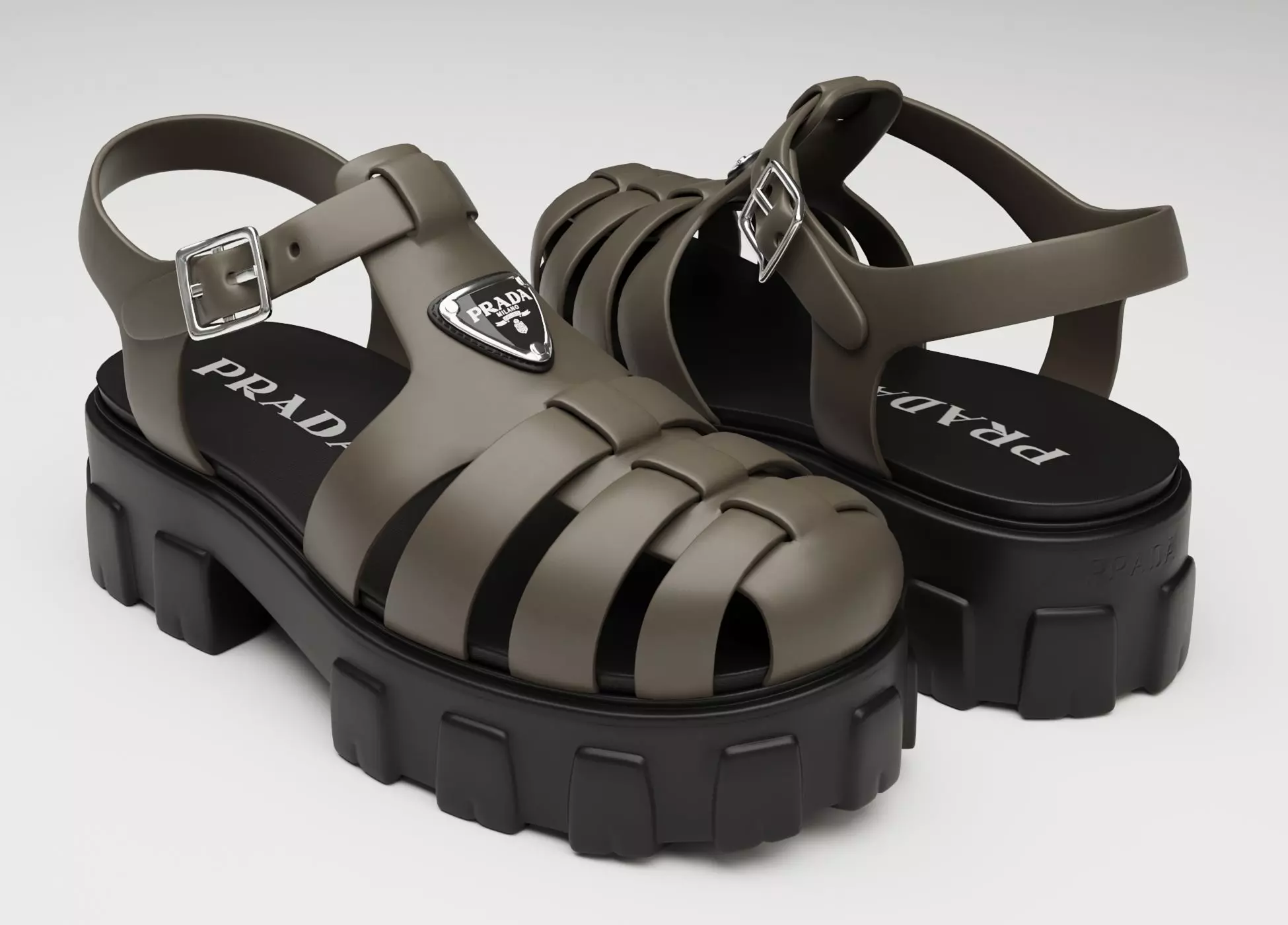 Sandals Prada on platform brown-black Low-poly 3D model