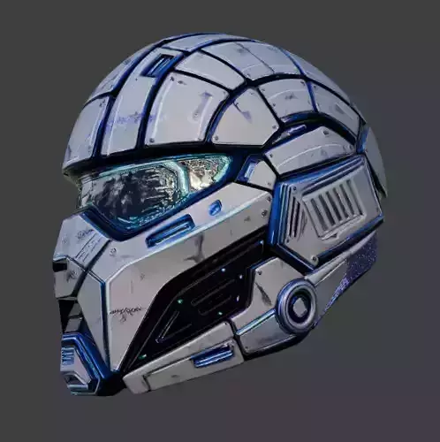 This high-quality 3D model features a sleek, futuristic sci-fi helmet with metallic armor plating, glowing blue visor accents, and intricate tactical details, perfect for cyberpunk, space marine, or military sci-fi characters. Designed with advanced hard-surface modeling techniques, it includes detailed vents, segmented panels, and neon-lit elements for a premium high-tech look.Ideal for game development (Unity, Unreal Engine), VR/AR projects, animations, rendering, or 3D printing (check poly count for optimization). The model is UV unwrapped, ready for PBR texturing, and optimized for real-time use while maintaining stunning visual fidelity in close-up renders.Available formats: OBJ, FBX, STL, USDZ, GLB. Elevate your sci-fi projects with this professional-grade asset – a must-have for futuristic armor collections!