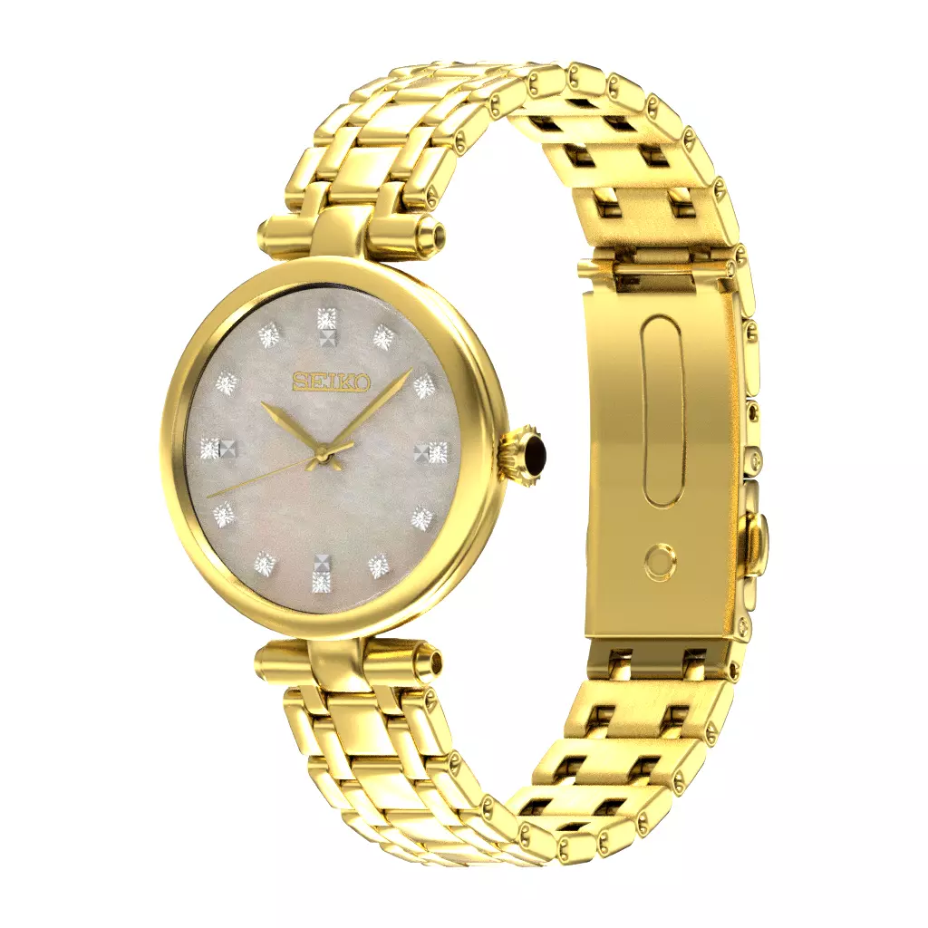 Seiko SRZ5 Goldtone Steel Diamonds Low-poly 3D model