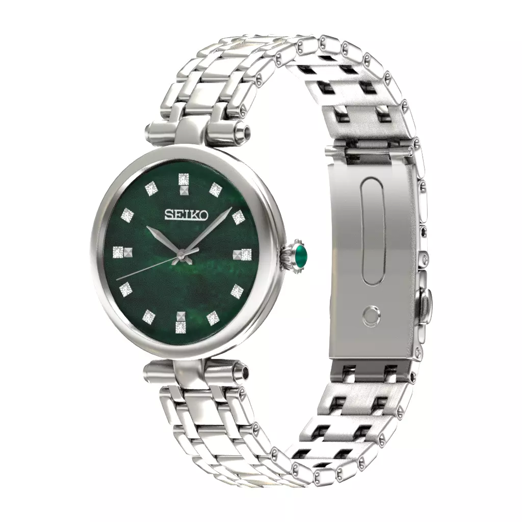Seiko SRZ5 Green Steel Diamonds Low-poly 3D model