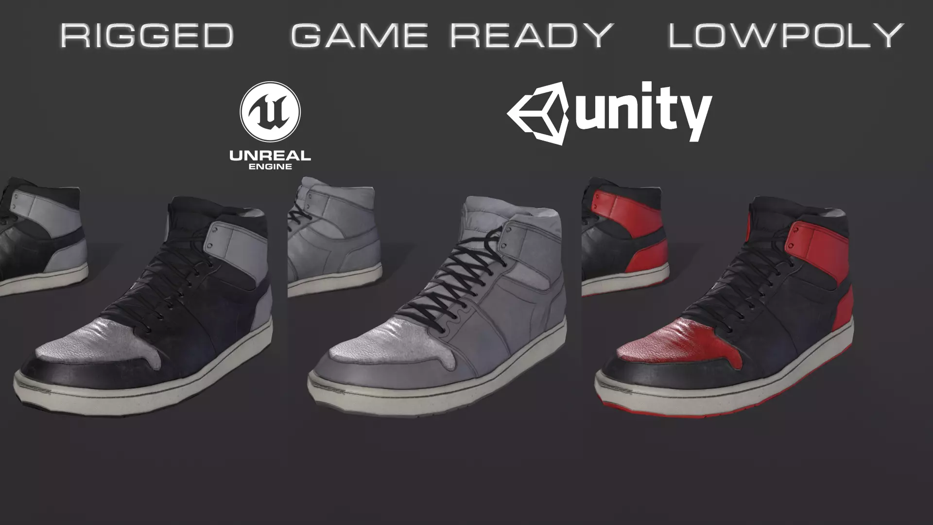 Casual shoes low-poly 3d models ready for Virtual Reality (VR), Augmented Reality (AR), games and other real-time apps.