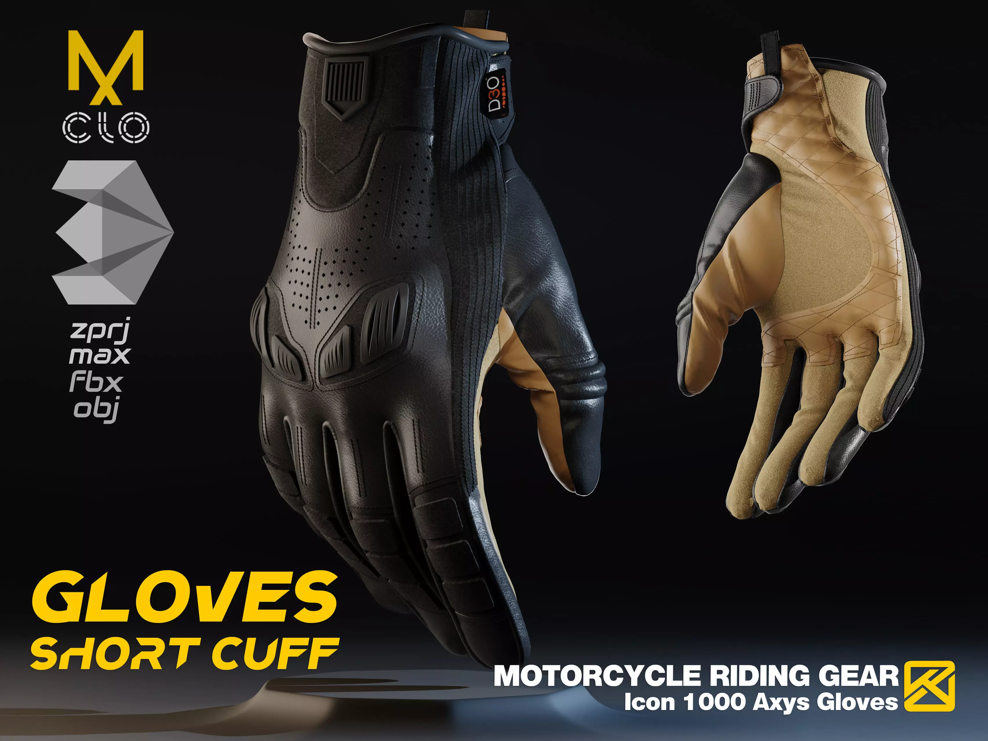Short Cuff Motorcycle Gloves-Marvelou-CLO-3DsMax project file 3D model
