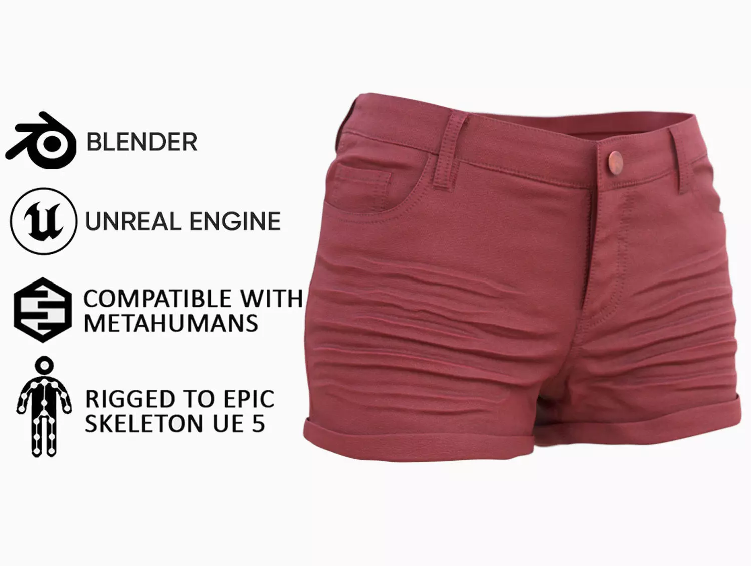 • Realistic 3D model of Shorts 89 - All MH Bodies & UE5 Skeletons - Rigged