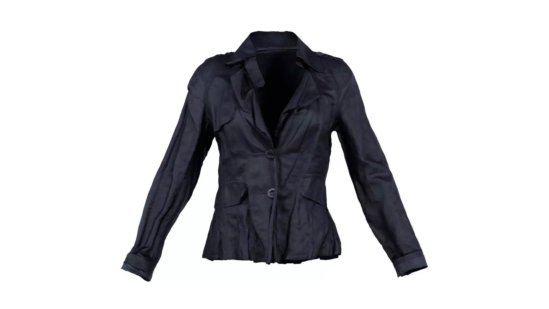 This model, shoulder button dark blue jacket shirt top, has been created using photogrammetry from a real world object. It is featuring a black jacket with buttons on the front.The 3D Model is part of the Polygonal Miniatures Remastered collection, which has been optimized with better shaders, correct scaling (meters) and centered position.We use multi camera capturing in the 3D scanning process. The scan data is cleaned and processed in Zbrush and Photoshop. In the end, the low poly product contains unwrapped UV's, textures and normals maps. Detailed specifications can be found below:
