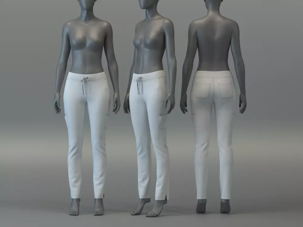 DESIGN DETAILS• Main Fabric: Twill (VMOD Library)• Combi Fabric: Rib Knit (VMOD Library)• Pockets: Front, Semi-curved slip; Side, Patched with Zipper opening & slip on; Back, Patched• Body: Skinny/Slim fit• Length: Below ankle; Side slits• Opening: Rib knit waistband with twill drawcord string• Finish: Facing & stitches included for a more realistic look when rendered