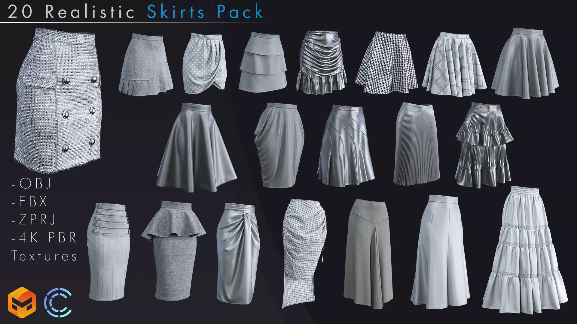 20 High quality realistic skirt models ready for use in close-up renders and other projects.