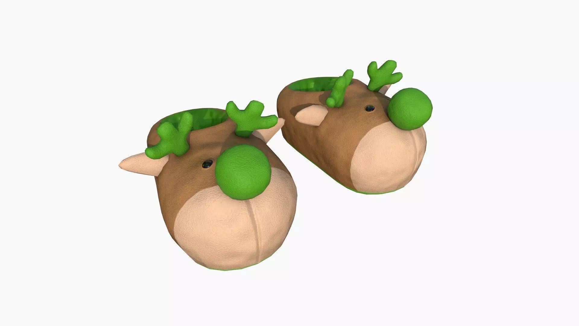 Slippers F06 Green Reindeer - Costume Character Design Low-poly 3D model
