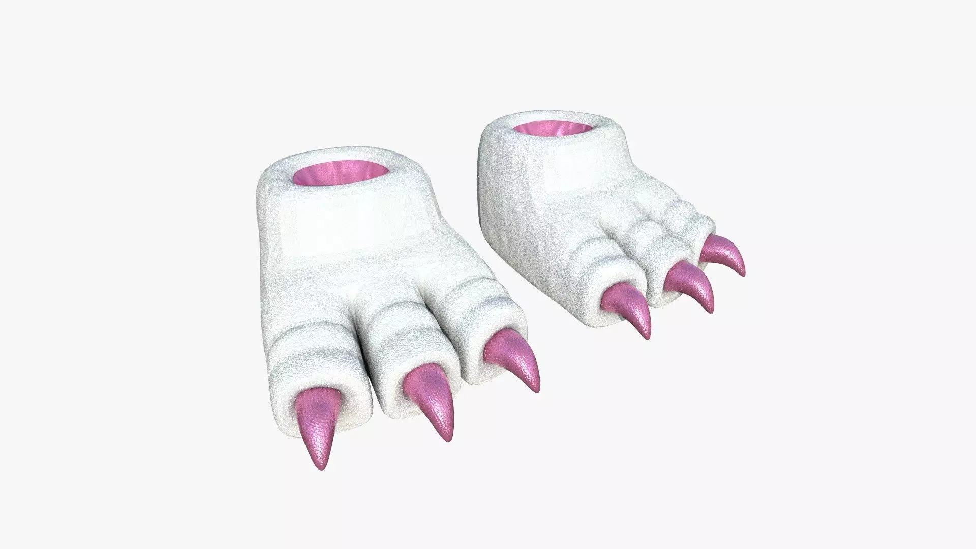 Slippers G09 White Pink Dino Paw - Costume Character Design Low-poly 3D model