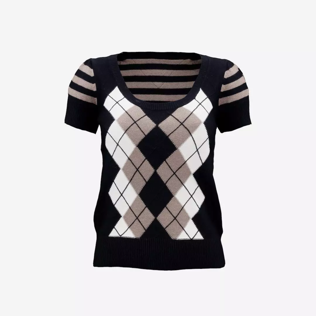 Fotorealistic Clothing Item: Squares Lines Open Neck Pull Top
