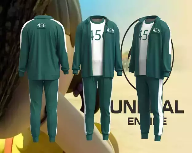 squid game players uniform 456 with Model (Clo3d, marvelous designer,) this project have: obj, mtl, fbx, dxf, pdf, clo3d/marvouse designer (ZPRJ) file. also have all texture files, pattern, trems, avatar.