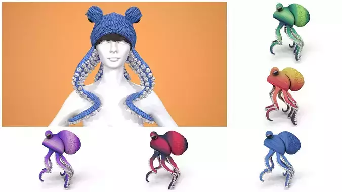 Squid knitting crochet hat 5 colors - ( Woman character not including)